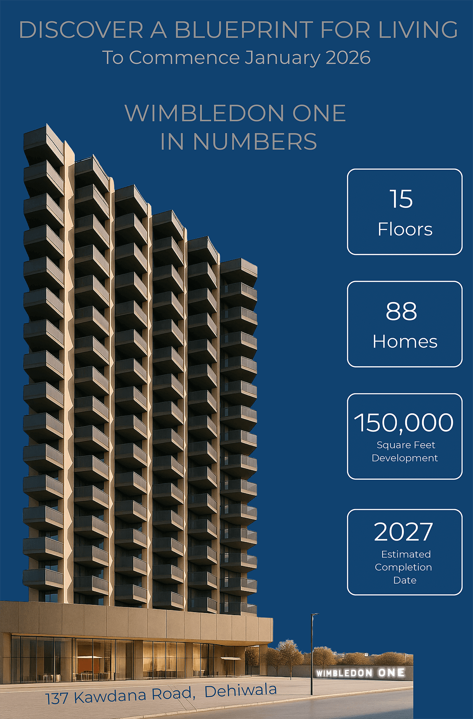 Welcome to Wimbledon One, a prestigious 150,000 square foot residential development by Bliss International. Rising gracefully from the vibrant heart of Dehiwala, this landmark project is meticulously crafted to set a new benchmark in sophisticated urban living.